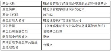 中国经济网北京3月30日讯 近日,财通证券资产管理有限公司基金公告,财通资管数字经济混合发起式、财通资管创新成长混合增聘李响。