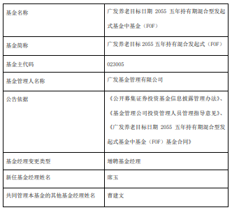 中国经济网北京3月31日讯 今日,广发基金公告,广发养老目标2055五年持有混合发起式(FOF)、广发积极养老目标五年持有期混合发起式(FOF)增聘席玉。