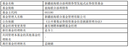 前海联合添利债券增聘孟令上 孟晓婧离任