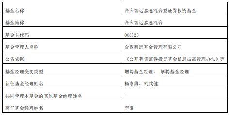 中国经济网北京4月1日讯 今日,合煦基金公告,合煦智远嘉选混合增聘杨志勇、刘武健,李骥离任。