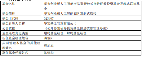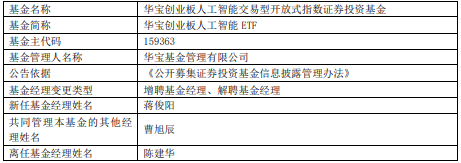 华宝创业板人工智能ETF与联接基金增聘蒋俊阳
