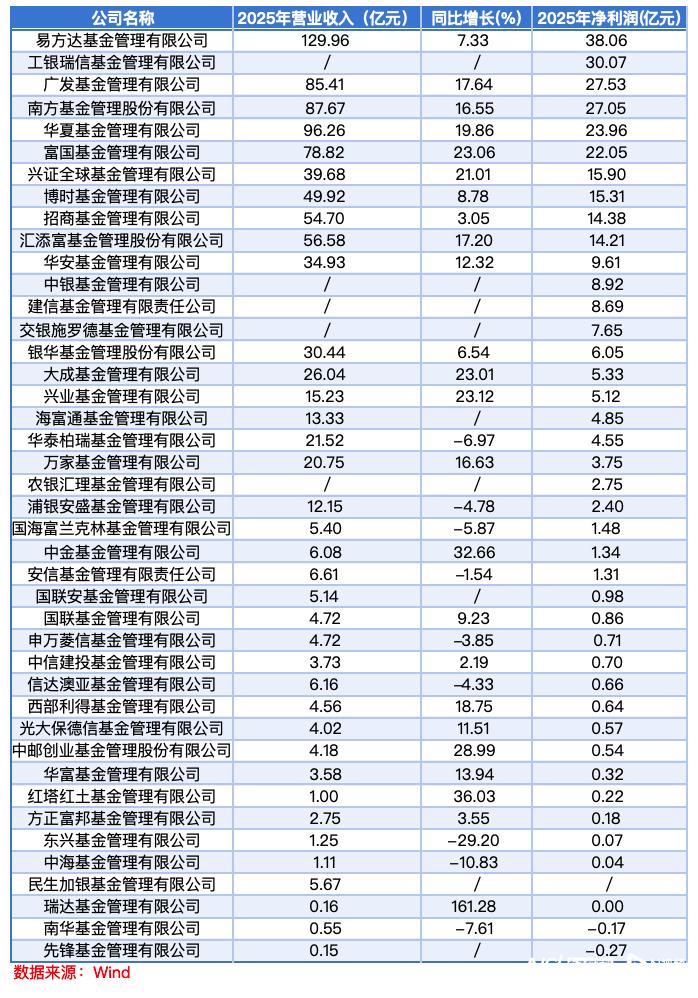 易方达营收、净利润领跑