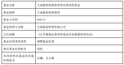 大成惠祥纯债债券增聘郑欣