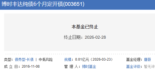 博时丰达纯债6个月定期开放债券清盘