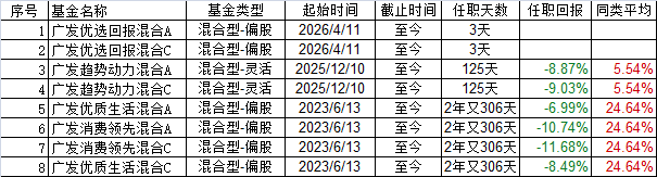 目前,王鹏管理着8只混合型基金,但从任职回报看,已公布业绩的基金全部为亏损状态,并且远远跑输同类产品均值,更有2只基金在管理2年多后的任职回报亏损超过10%。