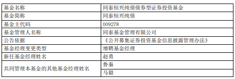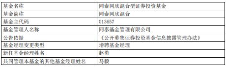 同泰基金旗下4基金增聘赵勇 同泰同欣混合4年多没赚钱