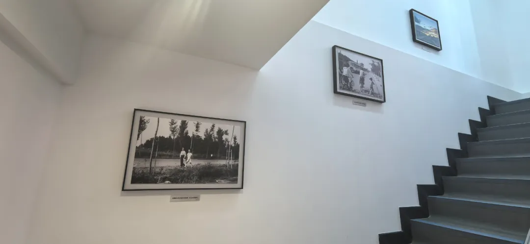 村史馆楼梯墙上悬挂着的中关村老照片。本报记者李牧鸣摄