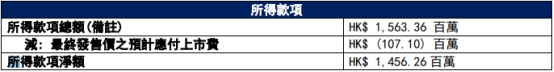 国鸿氢能所得款项总额为1,563.36百万港元,扣除最终发售价之预计应付上市费107.10百万港元后,所得款项净额为1,456.26百万港元。