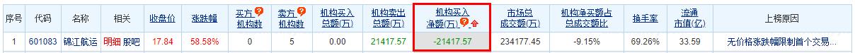 锦江航运龙虎榜:5家机构进卖出前5 净卖出共2.14亿元