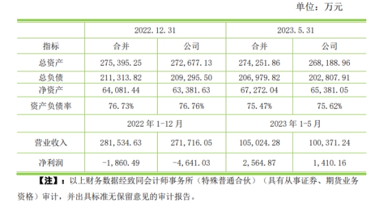 2022年1-12月,飞源化工营业收入为281,534.63万元,净利润为-1,860.49万元;2023年1-5月,飞源化工营业收入为105,024.28万元,净利润为2,564.87万元。