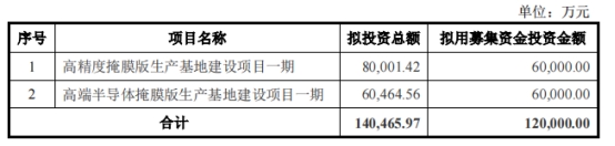 公司昨晚披露《2023年度向特定对象发行A股股票预案》称,本次向特定对象发行股票募集资金总额不超过120,000.00万元(含本数),募集资金扣除相关发行费用后将用于投资以下项目:高精度掩膜版生产基地建设项目一期、高端半导体掩膜版生产基地建设项目一期。
