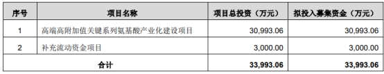 无锡晶海2023年11月28日披露的招股说明书显示,公司拟募集资金33,993.06万元,计划用于高端高附加值关键系列氨基酸产业化建设项目、补充流动资金项目。
