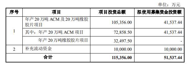 根据有关法律法规及规范性文件的要求,并结合公司财务状况和投资计划,本次拟向不特定对象发行可转债募集资金总额不超过人民币51,537.44万元(含本数),具体发行规模提请公司股东大会授权董事会在上述额度范围内确定。募集资金扣除发行费用后,将全部用于年产20万吨ACM及20万吨橡胶胶片项目、补充流动资金。