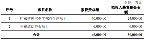 博俊科技首次公开发行股票募集资金总额为3.82亿元,扣除发行费用后,募集资金净额为3.26亿元。博俊科技最终募集资金净额较原计划少6441.03万元。招股说明书显示,该公司拟募集资金3.91亿元,分别用于汽车零部件、模具生产线建设项目、汽车零部件及模具生产基地项目、补充流动资金。
