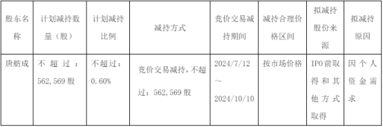 公司董事、副总经理唐舫成持有公司人民币普通股2,268,277股(其中无限售条件流通股份2,232,277股,有限售条件流通股份36,000股),占公司截至2024年6月19日股份总数的2.43%。
