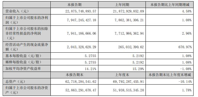 洋河股份于8月29日晚披露了2024年半年度报告。报告期内,洋河股份实现营收228.76亿元,同比增长4.58%;实现归母净利润79.47亿元,同比增长1.08%;实现扣非净利润79.41亿元,同比增长2.96%;经营活动产生的现金流量20.43亿元,同比增长670.97%。