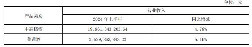按照出厂价的价位区间标准,洋河股份将产品分为中高档酒和普通酒,其中:中高档酒主要代表有梦之蓝(手工班、M9、M6+、水晶梦)、苏酒、天之蓝、珍宝坊(帝坊、圣坊)、海之蓝等。普通酒主要代表有洋河大曲、双沟大曲等。报告期内,洋河股份中高档酒实现营收199.61亿元,同比增长4.78%;普通酒实现营收25.30亿元,同比增长5.16%。
