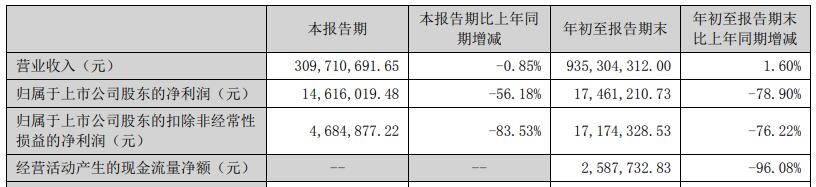 2024年前三季度,优博讯实现营业收入9.35亿元,同比增长1.60%;归属于上市公司股东的净利润1746.12万元,同比减少78.90%;归属于上市公司股东的扣除非经常性损益的净利润1717.43万元,同比减少76.22%;经营活动产生的现金流量净额258.77万元,同比减少96.08%。