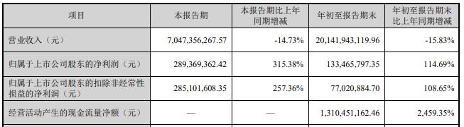 2024年前三季度,大北农实现营业收入201.42亿元,同比减少15.83%;归属于上市公司股东的净利润1.33亿元,同比增长114.69%;归属于上市公司股东的扣除非经常性损益的净利润7702.09万元,同比增长108.65%;经营活动产生的现金流量净额13.10亿元,同比增长2,459.35%。