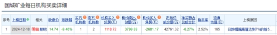 龙虎榜数据显示,国城矿业买入金额最大的前五名中,有1家机构专用席位;卖出金额最大的前五名中,有2家机构专用席位。经统计,国城矿业的机构席位今日净卖出金额为2681.17万元。