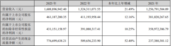 2023年,帝尔激光实现营业收入16.09亿元,同比增长21.49%;归属于上市公司股东的净利润4.61亿元,同比增长12.16%;归属于上市公司股东的扣除非经常性损益的净利润4.31亿元,同比增长10.25%;经营活动产生的现金流量净额为7.77亿元,同比增长52.40%。