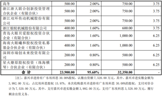 水晶光电拟以自有及自筹资金3.235亿元人民币收购嘉兴卓进股权投资合伙企业(有限合伙)(以下简称“嘉兴卓进”)、嘉兴创进股权投资合伙企业(有限合伙)(以下简称“嘉兴创进”)、深圳聚源芯创私募股权投资基金合伙企业(有限合伙)、南京翎贲昭离雷风恒股权投资合伙企业(有限合伙)(以下简称“南京翎贲昭离”)、嘉兴凤凰长进股权投资合伙企业(有限合伙)、杭州尚研壹号股权投资合伙企业(有限合伙)、高冬、浙江浙大联合创新投资管理合伙企业(有限合伙)、浙江双环传动机械股份有限公司、浙江银轮机械股份有限公司、青岛火眼贝爱股权投资合伙企业(有限合伙)、海南火眼曦和股权投资私募基金合伙企业(有限合伙)、深圳市瑞创未来投资有限公司、星火燎原股权投资(珠海横琴)合伙企业(有限合伙)共计14名交易对方持有的广东埃科思科技有限公司(以下简称“广东埃科思”、“埃科思”或“标的公司”)合计95.60%股权(以下简称“本次交易”)。本次交易价格以截至2024年9月30日广东埃科思股东权益的评估价值为基础,经双方协商确定。