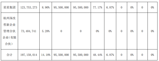 水晶光电2025年1月9日披露的关于控股股东股权解除质押及股权质押的公告显示,截至公告披露日,控股股东星星集团有限公司及其一致行动人持股数量为197,158,014股,持股比例为14.18%,本次解质押及质押后质押股份数量为95,500,000股,占其所持股份比例的48.44%,占公司总股本比例的6.87%。