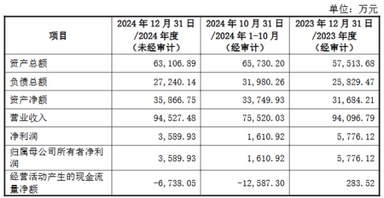 标的公司思芮科技的主要财务数据显示,2023年、2024年,思芮科技营业收入分别为94,096.79万元、94,527.48万元;归属母公司所有者净利润分别为5,776.12万元、3,589.93万元;经营活动产生的现金流量净额分别为283.52万元、-6,738.05万元。