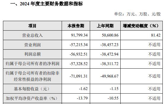 中国经济网北京3月19日讯 云天励飞(688343.SH)日前发布的2024年度业绩快报公告显示,公司2024年度实现营业总收入91,799.34万元,较上年同期增加81.42%;实现归属于母公司所有者的净利润-57,328.52万元,较上年同期亏损增加19,016.80万元;实现归属于母公司所有者的扣除非经常性损益的净利润-71,091.31万元,较上年同期亏损增加21,122.64万元。