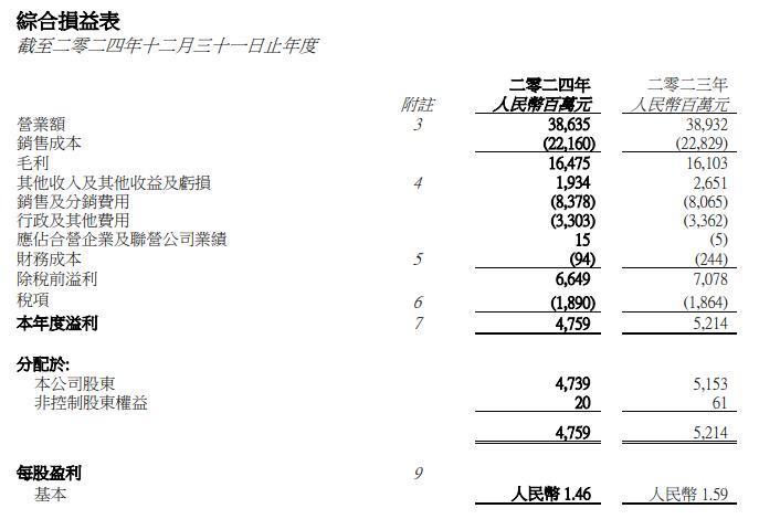 2020年至2024年度,华润啤酒营业总收入分别为314.5亿元、333.9亿元、352.6亿元、389.3亿元、386.4亿元,2024年度营业总收入为近5年内首次下降。