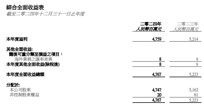 2020年至2024年度,华润啤酒归母净利润分别为20.94亿元、45.87亿元、43.44亿元、51.53亿元、47.39亿元。