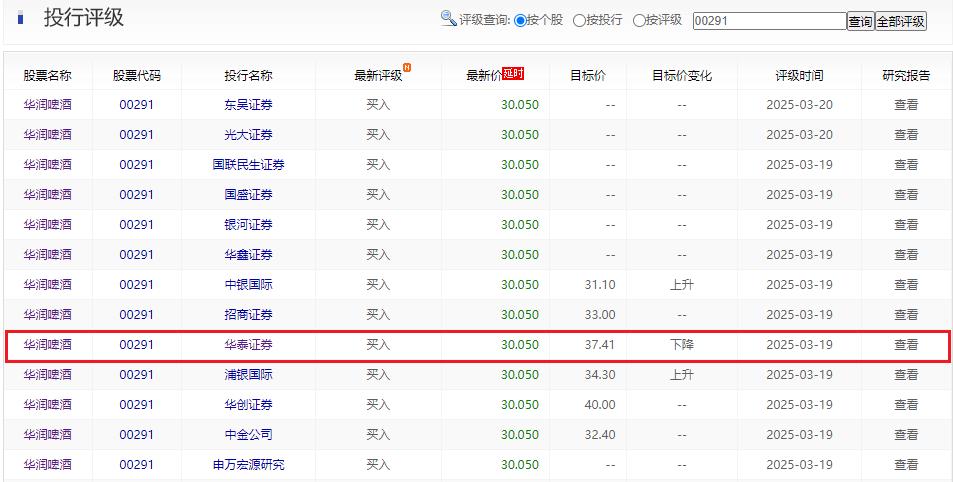 华润啤酒营收近5年来首降 2券商降其目标价2券商升