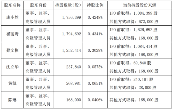 公司董事陈琳合计持有公司168,000股(股权激励归属股份),占公司股份总数的0.0406%,均为个人股票账户直接持有。
