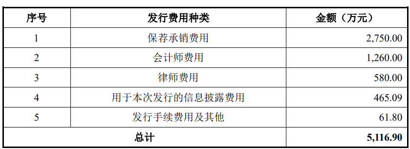 浙江华远本次发行费用总额5,116.90万元(不含增值税),其中保荐承销费用2,750.00万元。
