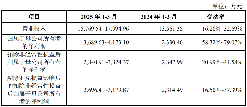 公司预计2025年1-3月营业收入15,769.54万元至17,994.96万元,同比变动16.28%至32.69%;归属于母公司所有者的净利润3,689.63万元至4,173.10万元,同比变动58.32%至79.07%;扣除非经常性损益后归属于母公司所有者的净利润2,840.91万元至3,324.37万元,同比变动20.99%至41.58%。