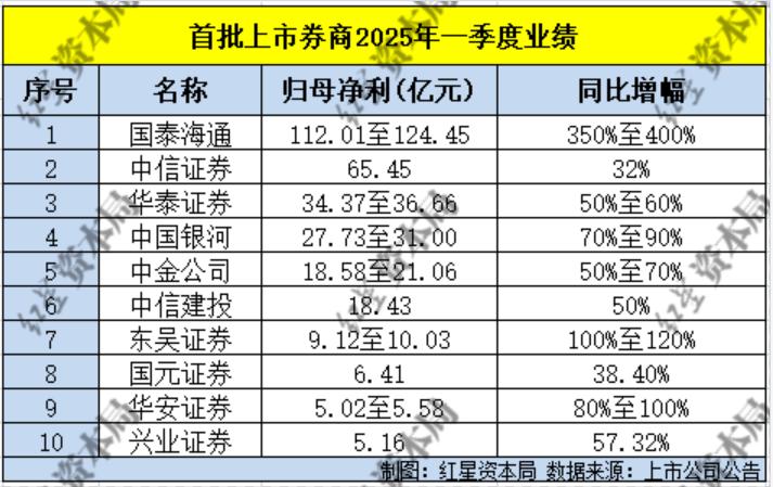 首批上市券商一季报预告:中信证券丢了第一,8家净利同比预增50%及以上