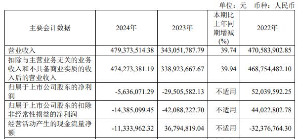 中国经济网北京4月16日讯 和达科技(688296.SH)昨晚发布的2024年年度报告显示,2024年,和达科技实现营业收入4.79亿元,同比增长39.74%;归属于上市公司股东的净利润-563.61万元,上年同期为-2950.56万元;归属于上市公司股东的扣除非经常性损益的净利润-1438.51万元,上年同期为-4208.82万元;经营活动产生的现金流量净额-1133.40万元,上年同期为3679.48万元。