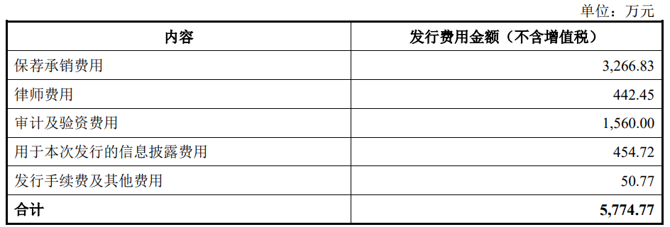本次宏工科技公开发行新股的发行费用(不含增值税)合计5,774.77万元,其中保荐承销费用3,266.83万元。