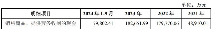 上述同期,公司销售商品、提供劳务收到的现金分别为48,910.01万元、179,770.06万元、182,651.99万元和79,802.41万元;经营活动产生的现金流量净额分别为12,671.76万元、-5,336.80万元、-4,235.44万元和-15,623.92万元。