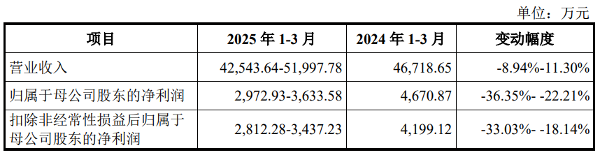 宏工科技预计2025年1-3月实现营业收入42,543.64万元至51,997.78万元,同比变动-8.94%至11.30%;预计实现归属于母公司股东的净利润2,972.93万元至3,633.58万元,同比变动-36.35%至-22.21%;预计实现扣除非经常性损益后归属于母公司股东的净利润2,812.28万元至3,437.23万元,同比变动-33.03%至-18.14%。