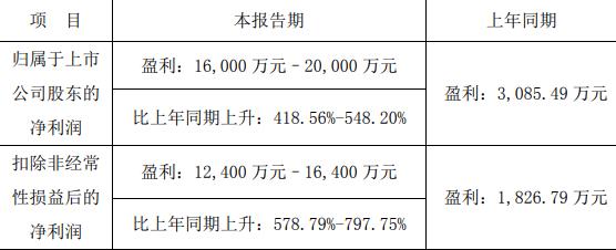 据公司2024年度业绩预告,2024年,公司归属于上市公司股东的净利润预计盈利16,000万元至20,000万元,比上年同期上升418.56%至548.20%;扣除非经常性损益后的净利润预计盈利12,400万元至16,400万元,比上年同期上升578.79%至797.75%。