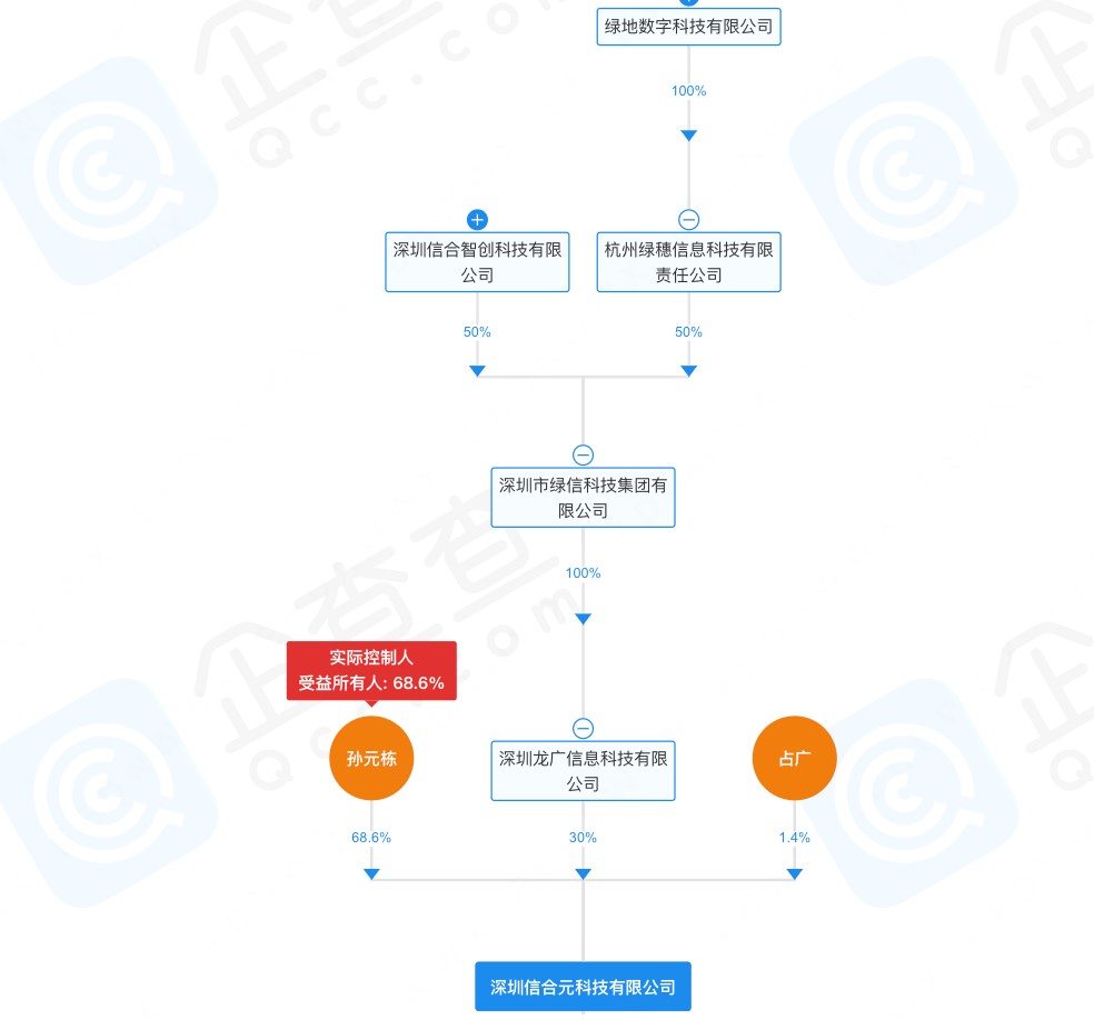 据公开信息,信合元科技是“绿地系”绿新集团下属子公司。