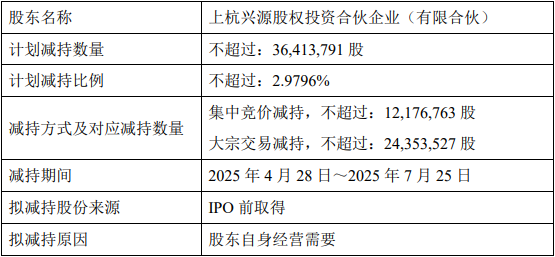本次减持计划实施前,上杭兴源持有公司股份36,413,791股,占公司总股本的比例为2.9796%。