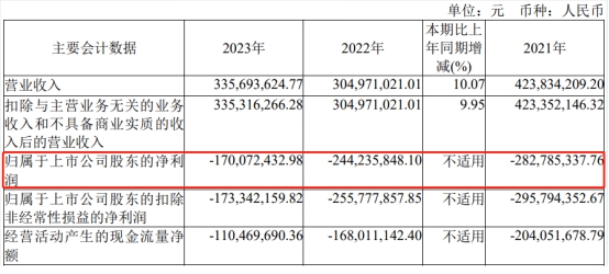 2017年至2023年,青云科技归属于母公司所有者的净利润分别为-9647.78万元、-1.49亿元、-1.90亿元、-1.63亿元、-2.83亿元、-2.44亿元、-1.70亿元。