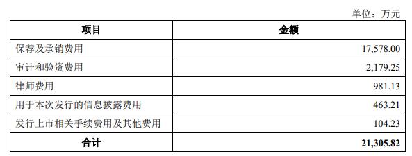 天有为本次发行费用总额为21,305.82万元(不含增值税),其中,保荐及承销费用17,578.00万元。