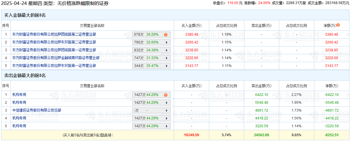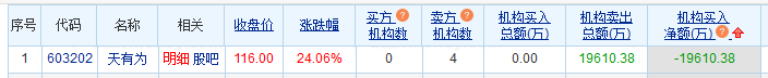 天有为龙虎榜:4家机构进卖出前5 净卖出共1.96亿元