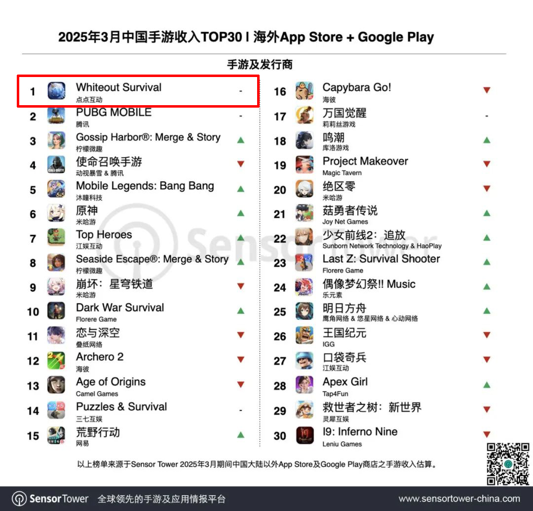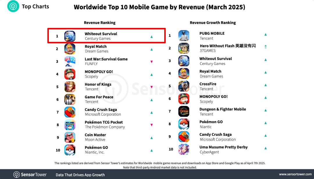 《Whiteout Survival》登顶2025年3月全球手游收入榜
