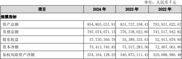 截至2024年末,广州银行资产总额8,548.05亿元,同比增加230.78亿元,增幅2.77%;负债总额7,970.75亿元,同比增加207.37亿元,增幅2.67%,其中存款余额(不含应付利息)4,934.65亿元,同比增加544.94亿元,增幅12.41%。