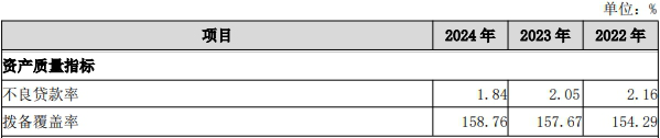 截至2024年末,广州银行不良贷款余额85.25亿元,同比减少9.86亿元,降幅10.36%;不良贷款率1.84%,同比下降0.21个百分点,实现不良贷款及不良率“双降”。报告期末,广州银行拨备覆盖率为158.76%,上年末为157.67%。