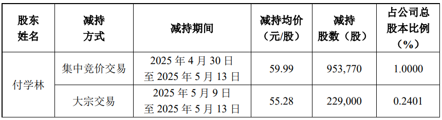 根据公告计算,付学林本次减持套现约6987.58万元。